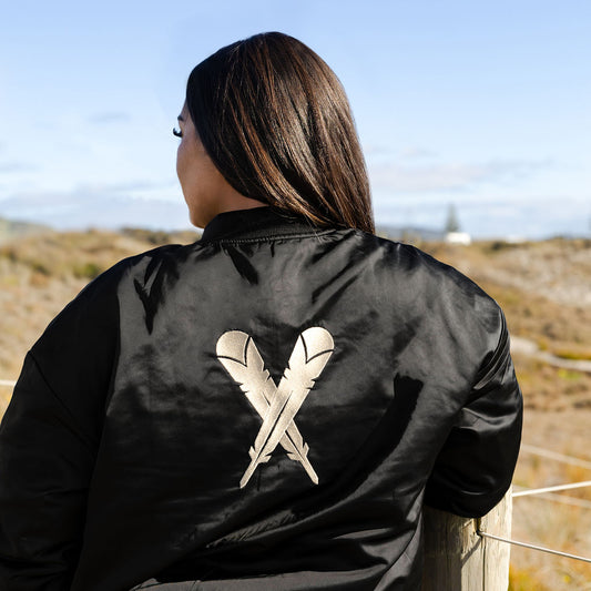 KAITIAKI BOMBER JACKET - BLACK SATIN