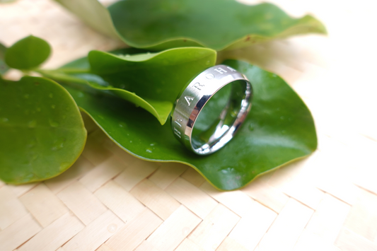 HE AROHA MUTUNGA KORE WIDE BEVELLED RING