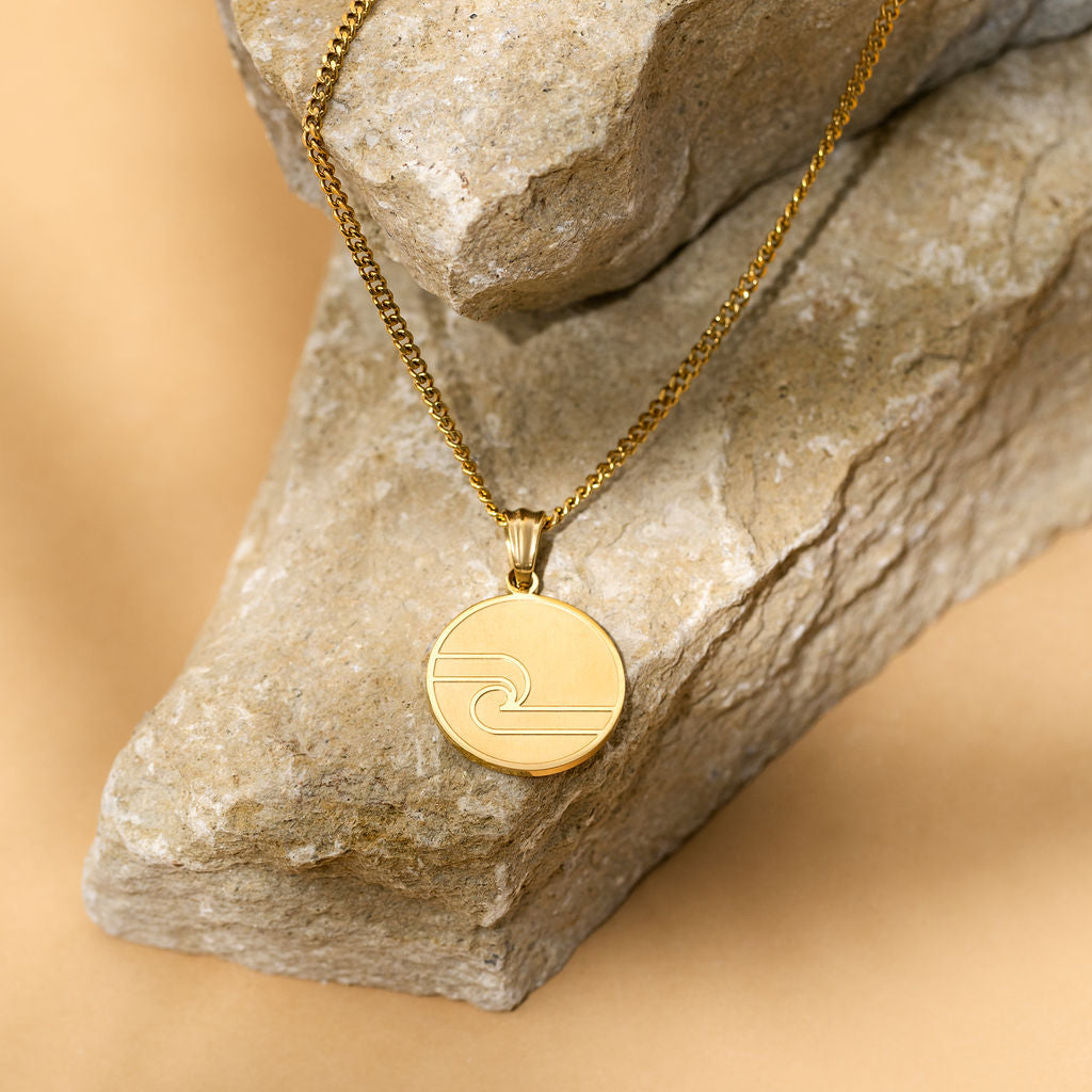 Available in 18K Gold or Rhodium Silver Gold Plated Stainless Steel Engraved 20mm Coin Pendant on a 2mm Cuban Link Chain or Rose Gold Plated on a 2mm Box Chain, all on a 18" Necklace +5cm extension.
