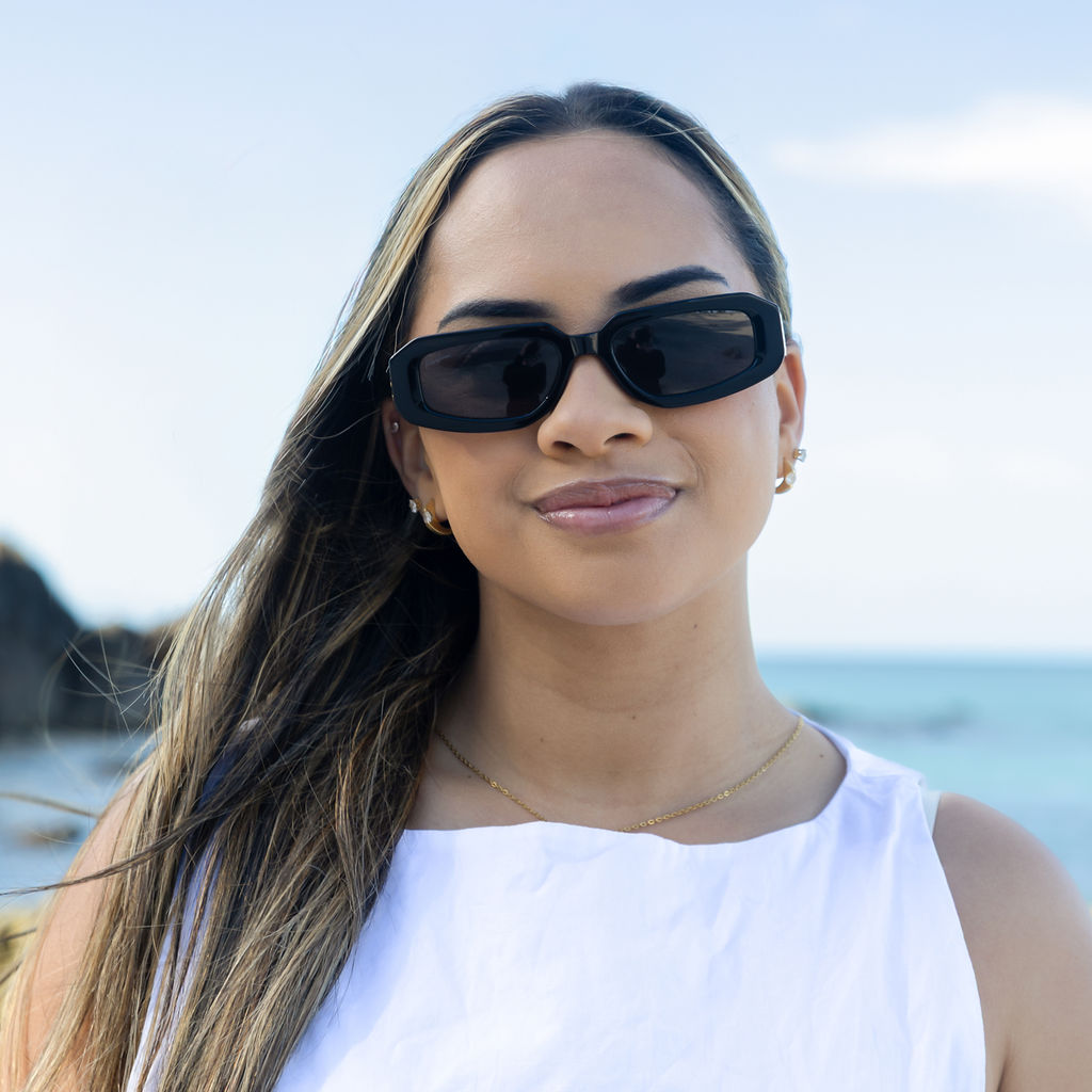 The Tino Slim Shades feature the iconic tohu (symbol) from the Tino Rangatiratanga flag. The symbol represents Indigenous sovereignty and autonomy as stated in the second article of Te Tiriti o Waitangi.